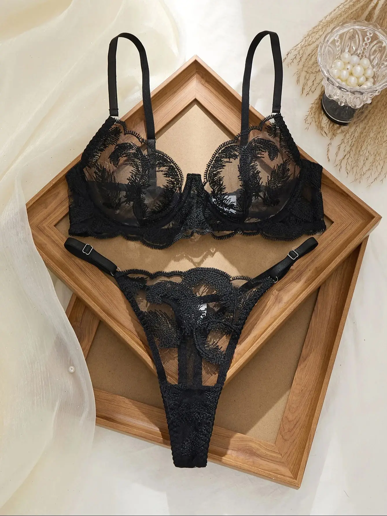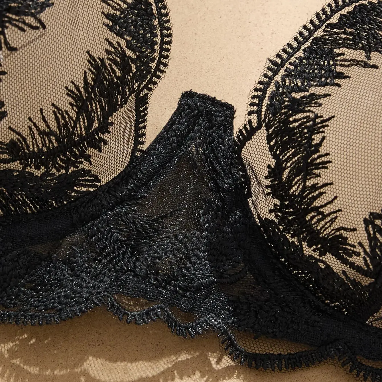 Black Feathers Comfortable Underwear Set Soft And Stylish Women's Intimate Apparel Ensemble