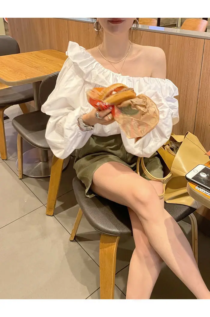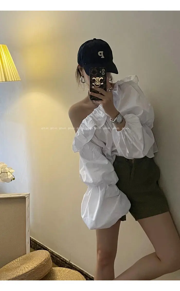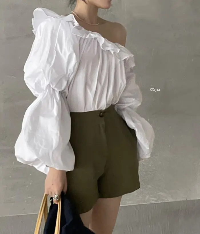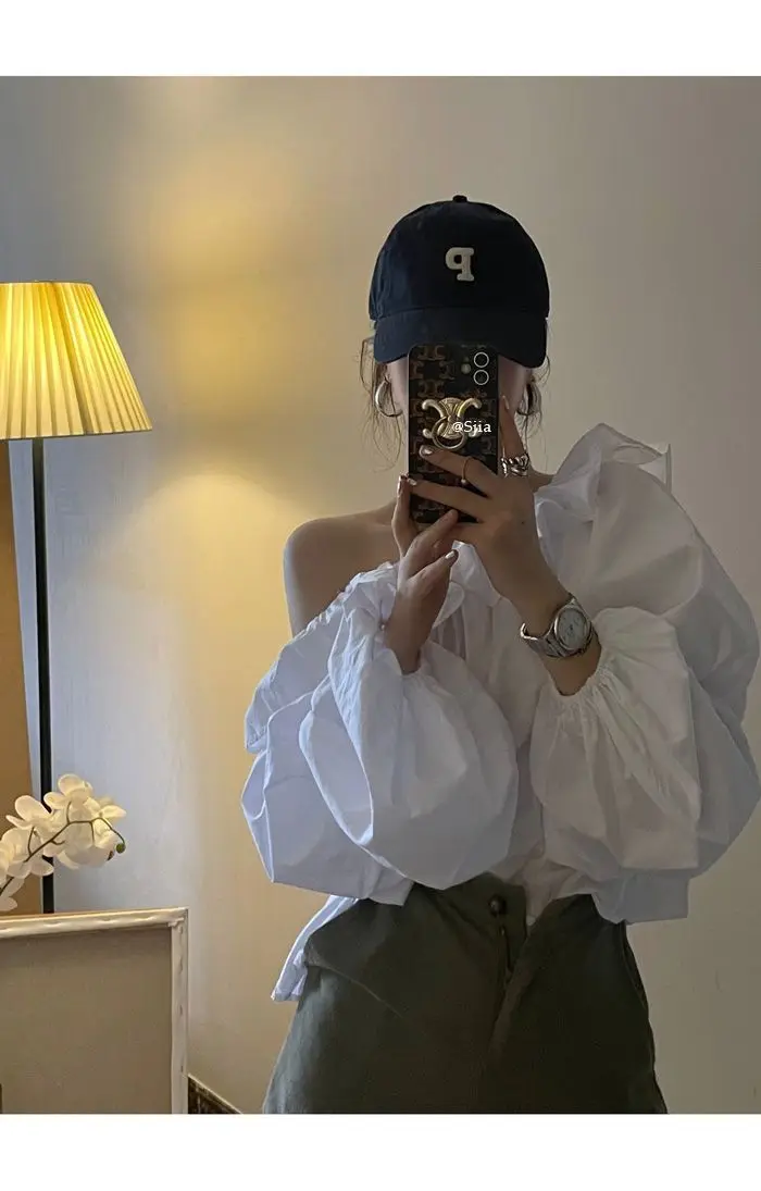 Blouses Women Vintage French Style Chic Elegant Party Blusas Tops All-match Spring Summer Stylish Puff Sleeve Clothing Pure Crop