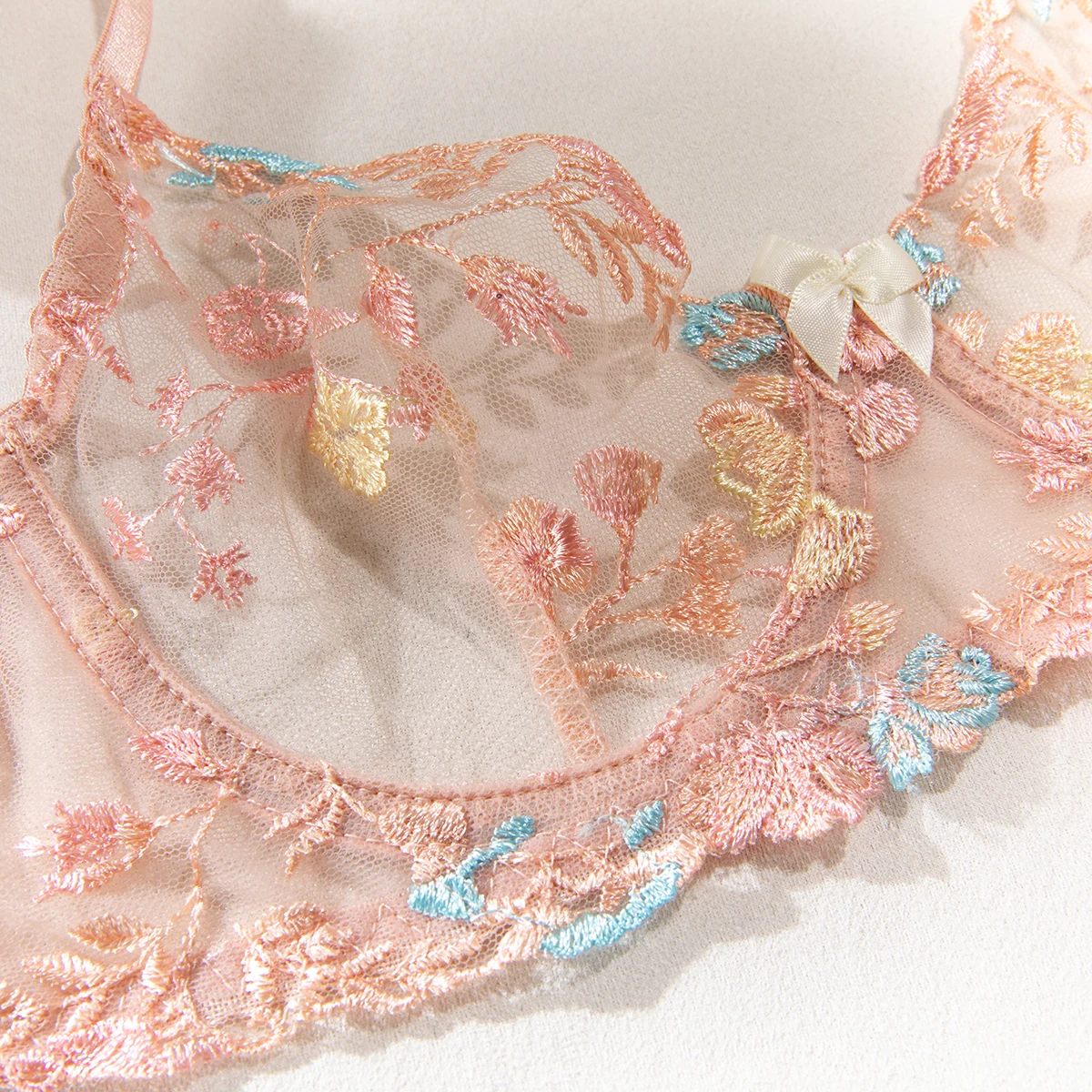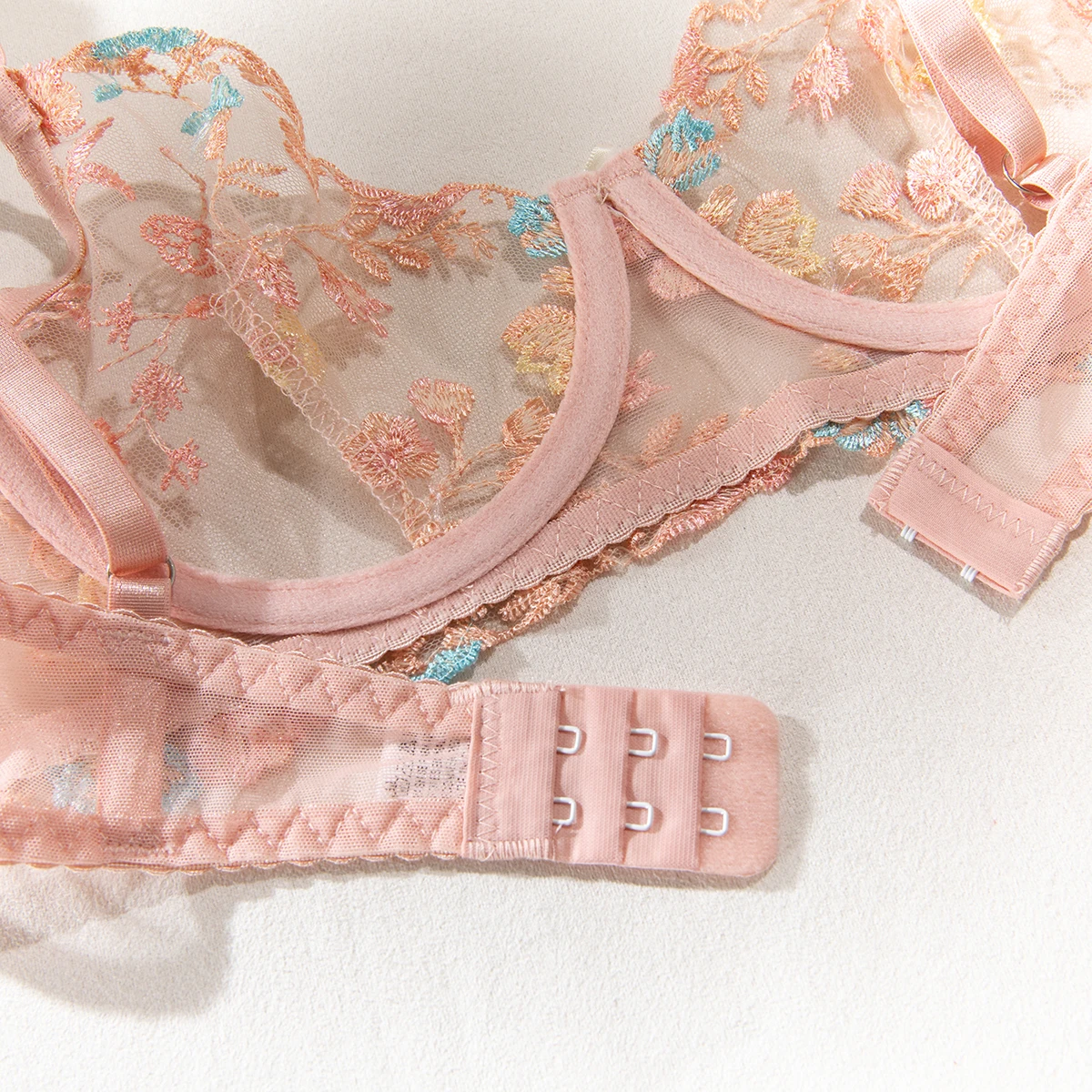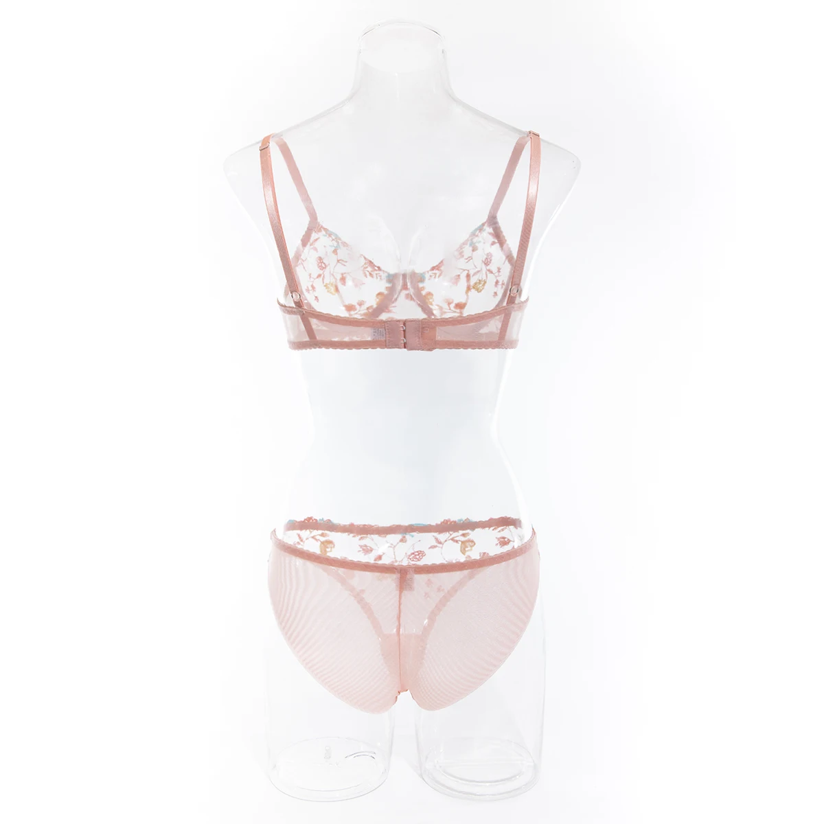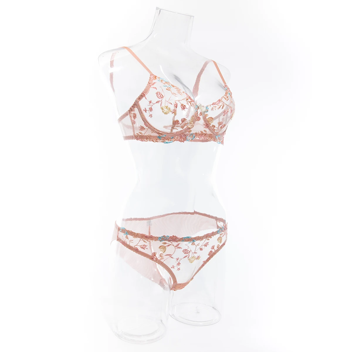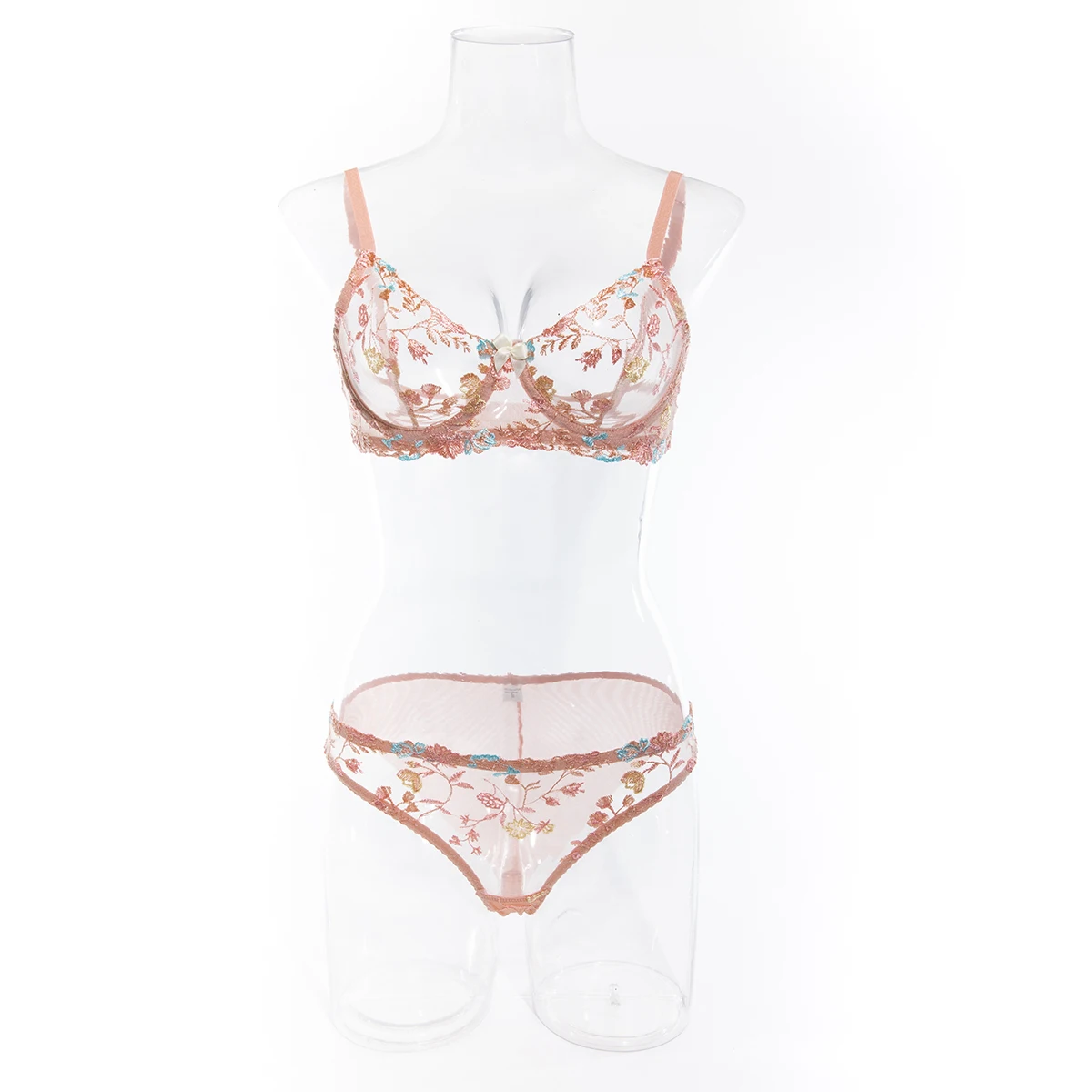 Floral Embroidery Sheer Transparent Lingerie Set Women Sheer Bra + Brief Underwear Set Back Sexy Intimates BOHO