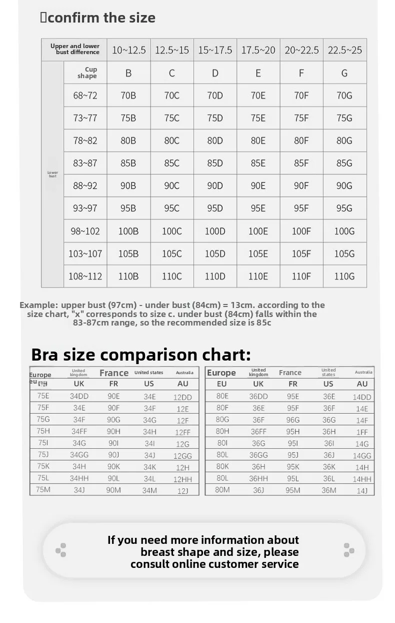 Inclusive Sizing: We celebrate every body. Available in a wide range of sizes from D to K cup, accompanied by a detailed international size chart to help you find your perfect fit effortlessly.