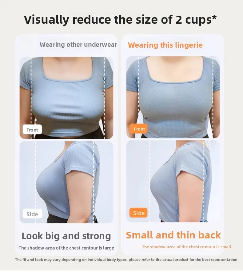 Minimizing Effect with a Flattering Silhouette: Engineered with full coverage cups and side-slimming panels, this bra gently holds and reshapes your bust for a naturally sleek and minimized look under any outfit.