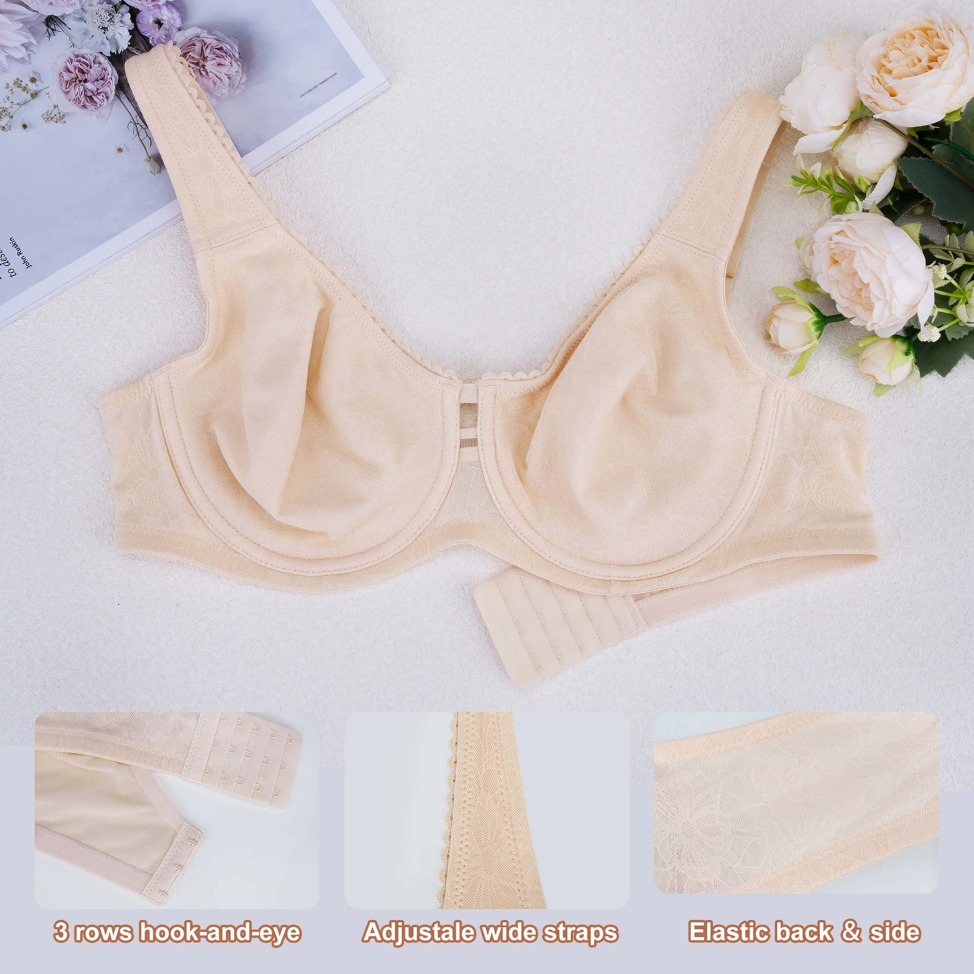 Experience firm yet comfortable support with our sturdy underwire, expertly designed to lift and shape your bust. It creates a beautiful, natural silhouette while providing the foundational support needed for larger cup sizes, ensuring all-day confidence without compromise.