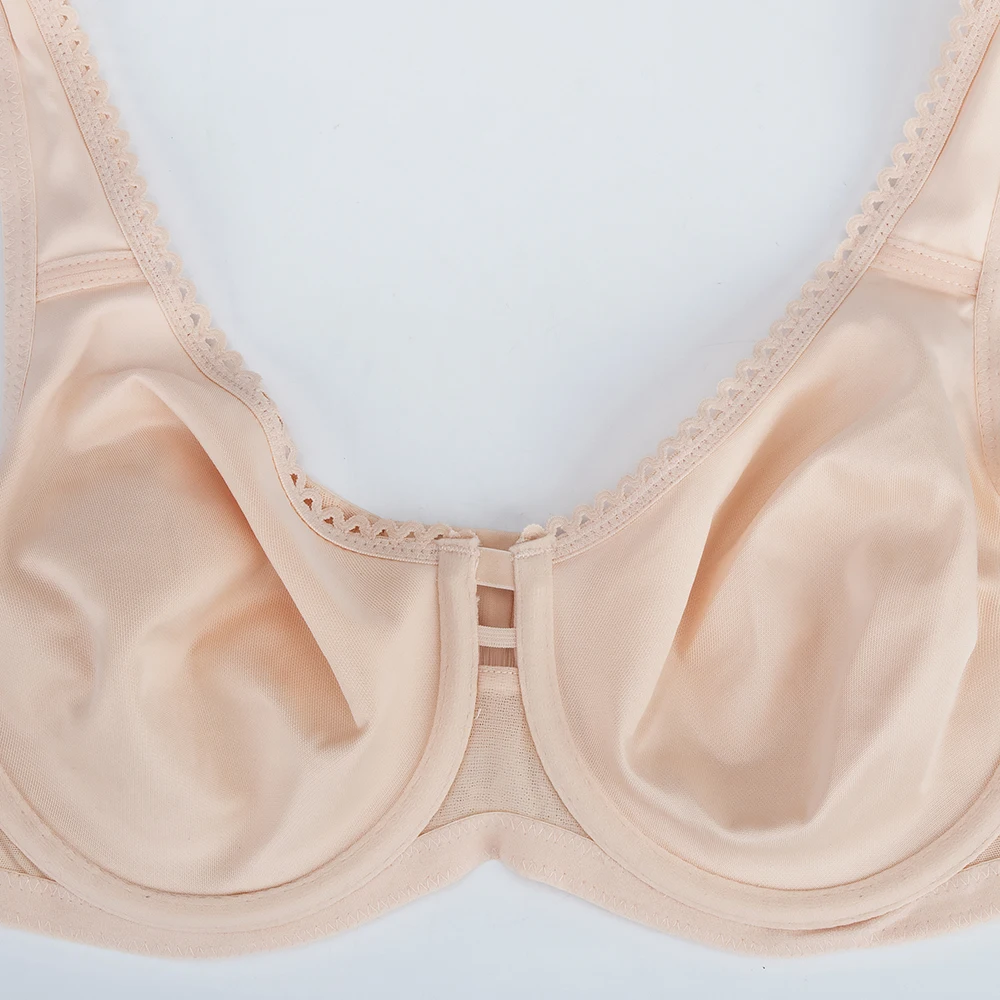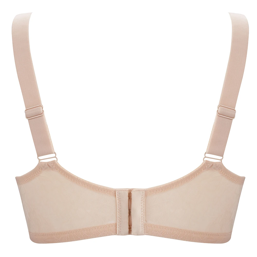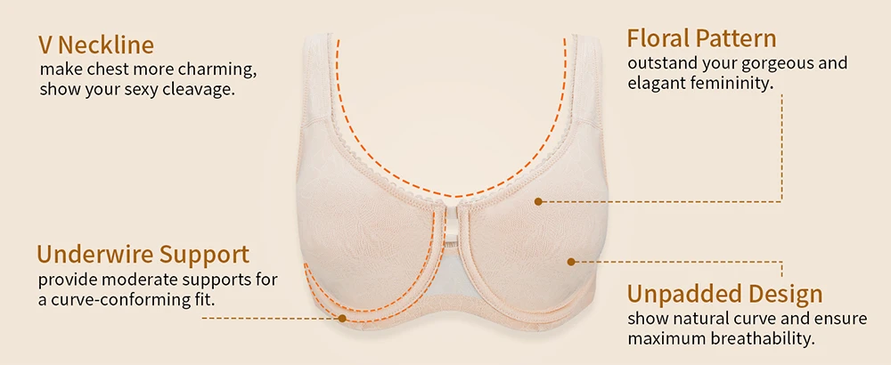 Features delicate, soft lace that adds a touch of sophisticated femininity. The unpadded, full-coverage cups offer a natural shape and modesty without adding extra bulk, ensuring a smooth and discreet look under any outfit.
