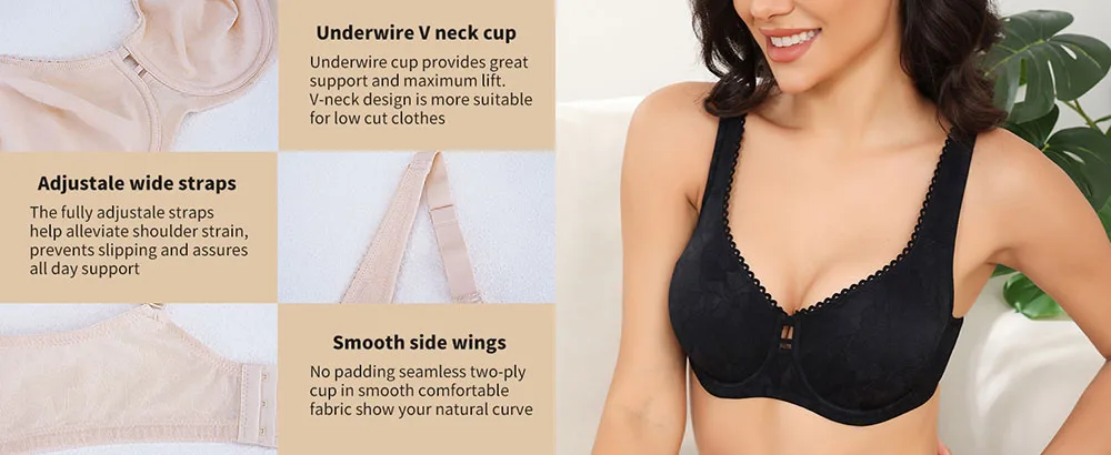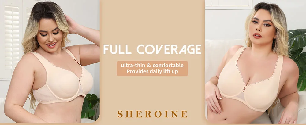Sheroine Plus Size Underwire Bra Full Coverage Support, Comfortable Lace for Women Unpadded Large Bust Minimizer with Wide Strap