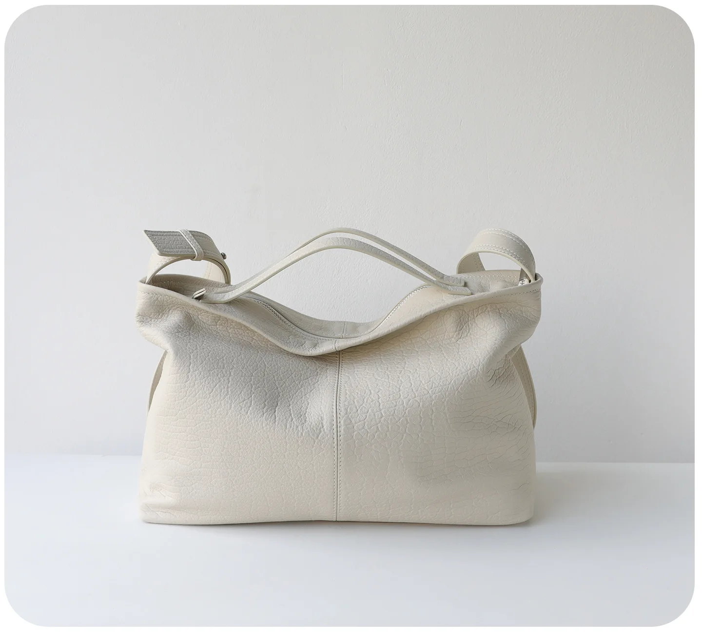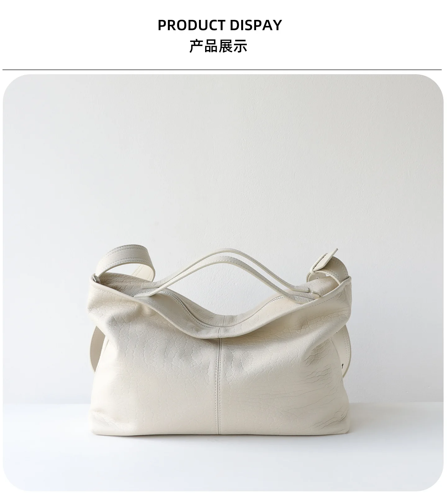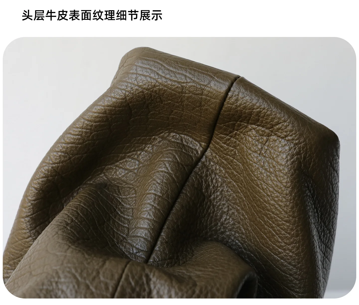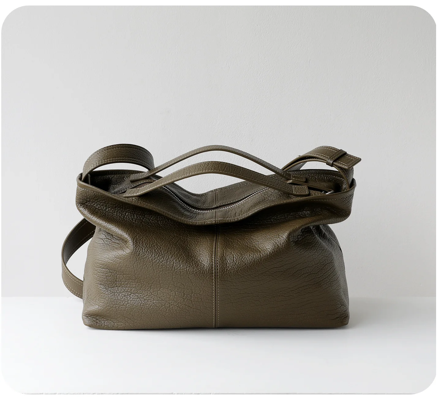Slouchy Style Elephant Grain Top Layer Cowhide Leather Women Handbag Leisure Sage Green Beautiful Shoulders Bag