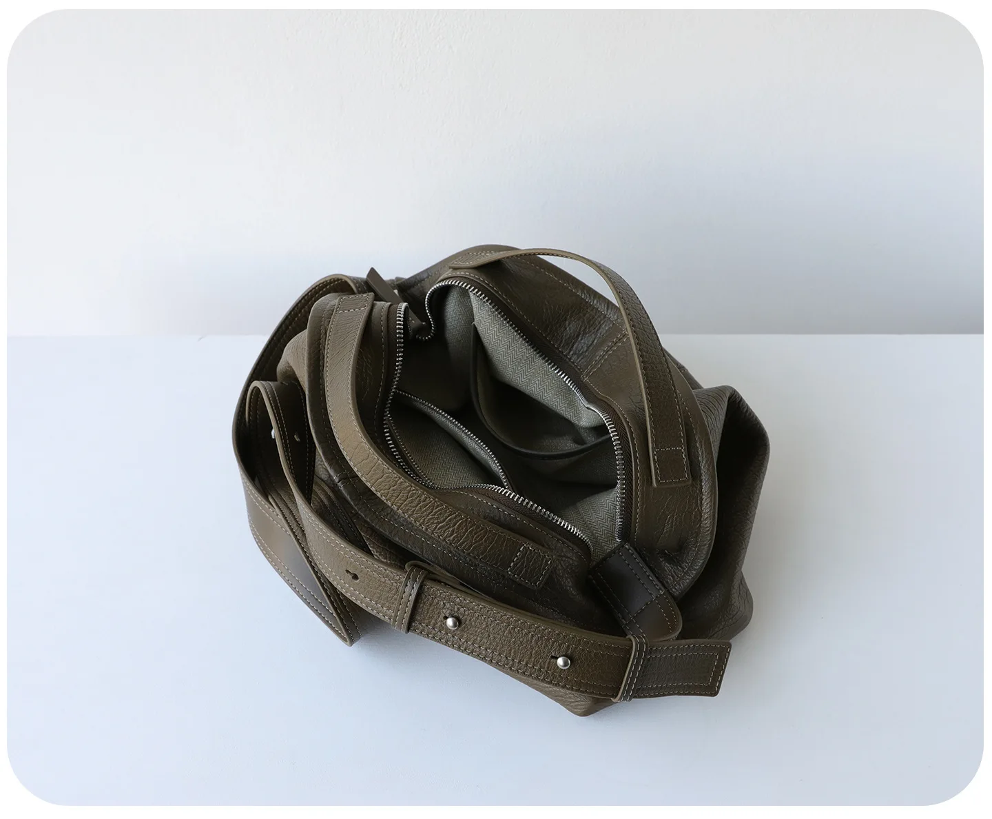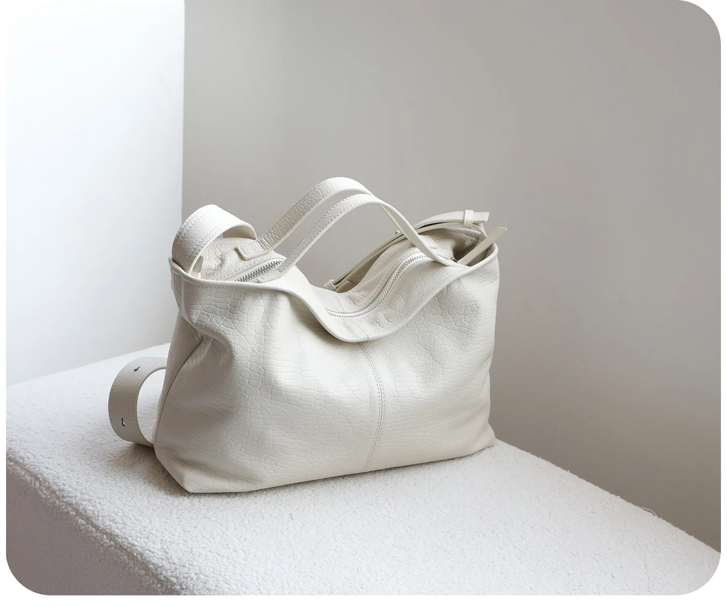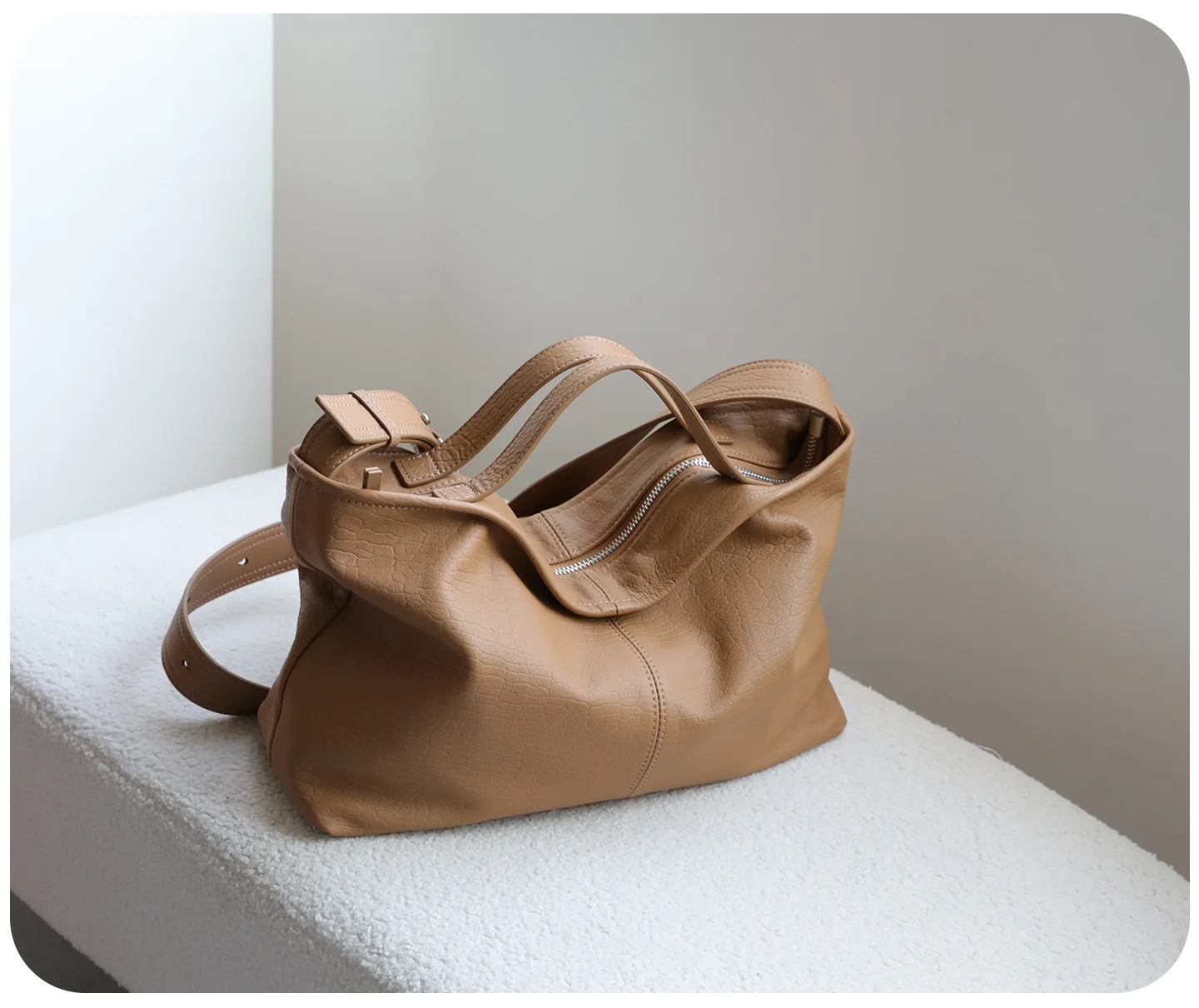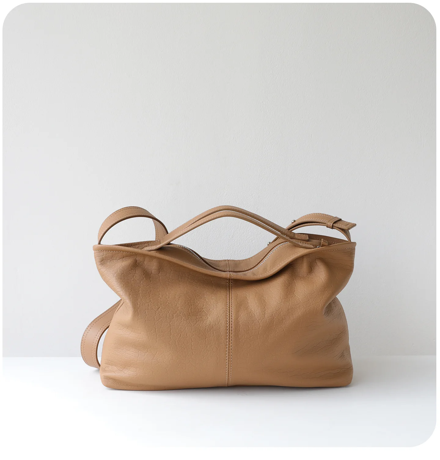Slouchy Style Elephant Grain Top Layer Cowhide Leather Women Handbag Leisure Sage Green Beautiful Shoulders Bag