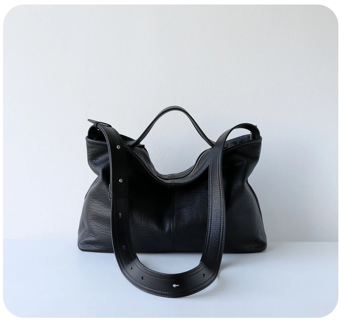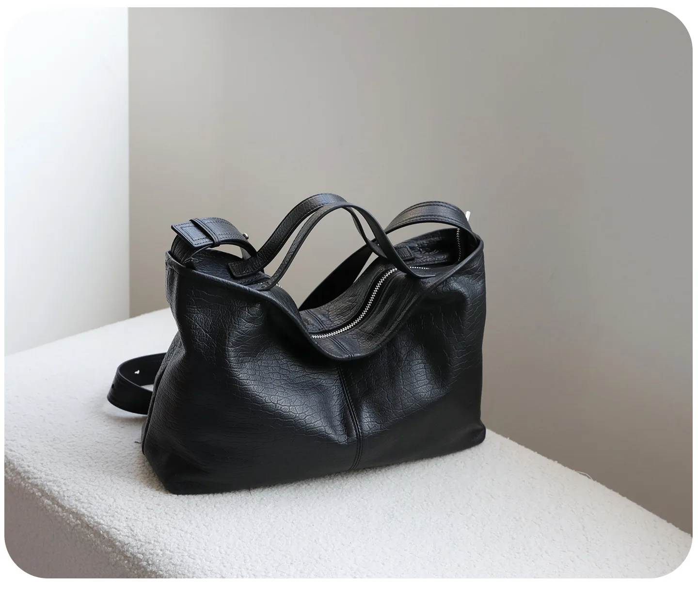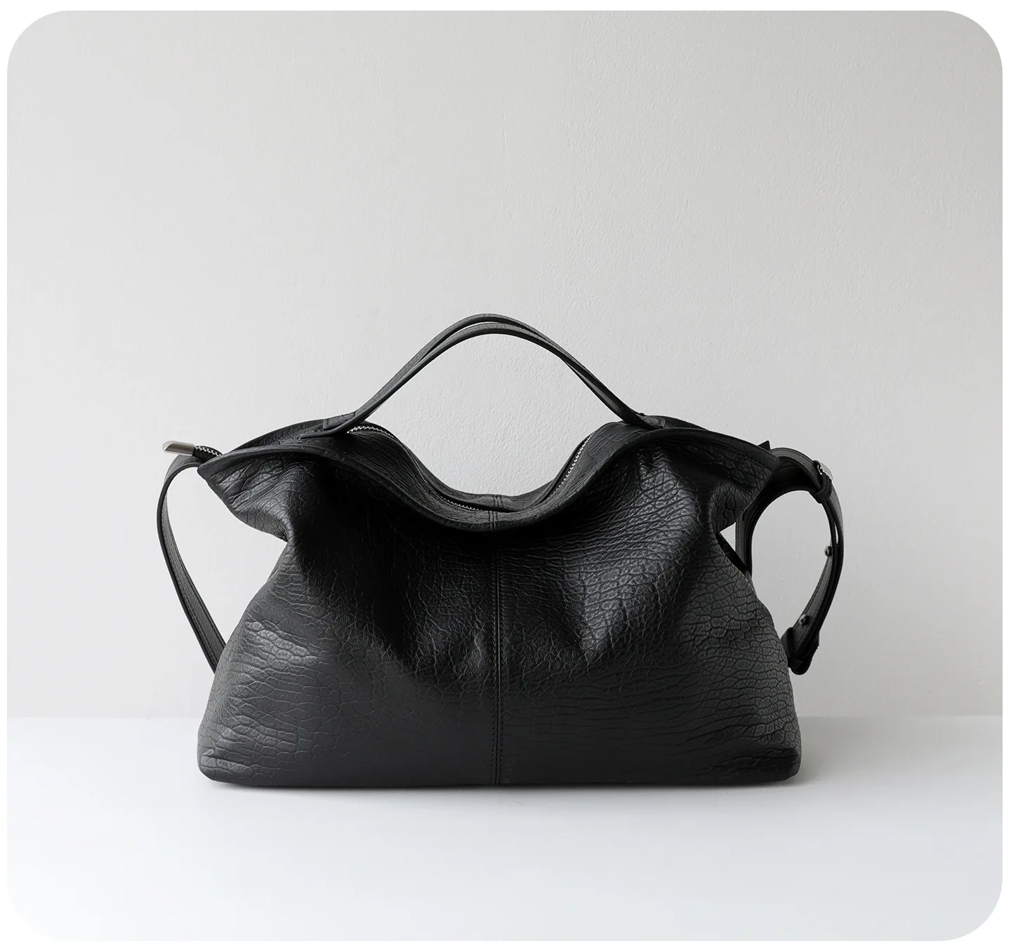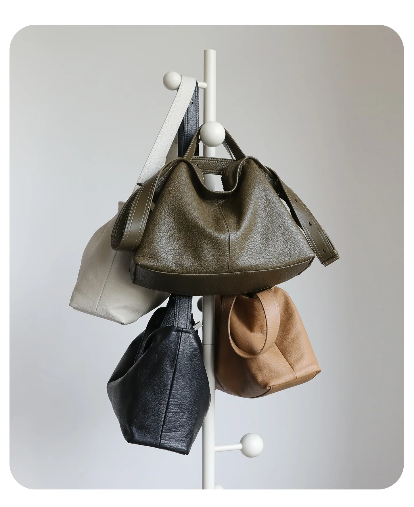 Slouchy Style Elephant Grain Top Layer Cowhide Leather Women Handbag Leisure Sage Green Beautiful Shoulders Bag