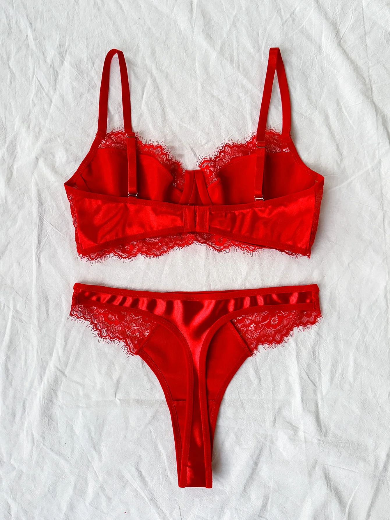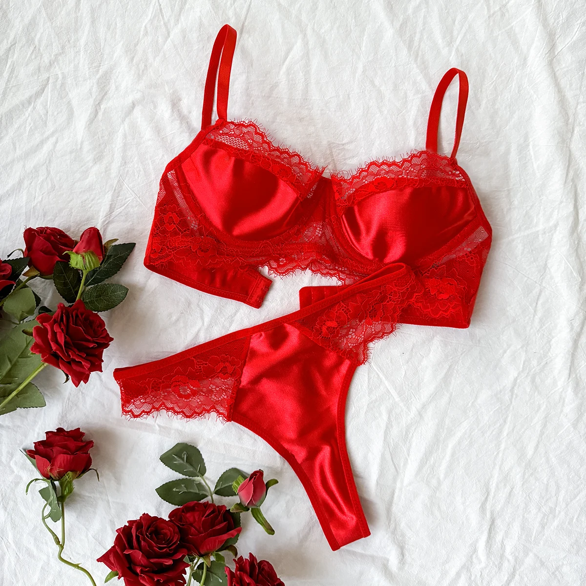 Women's Underwear & Lingerie& briefs 2024 ,eyelash sxy fancy lace strapping underwire nonpadded bra & brazilian